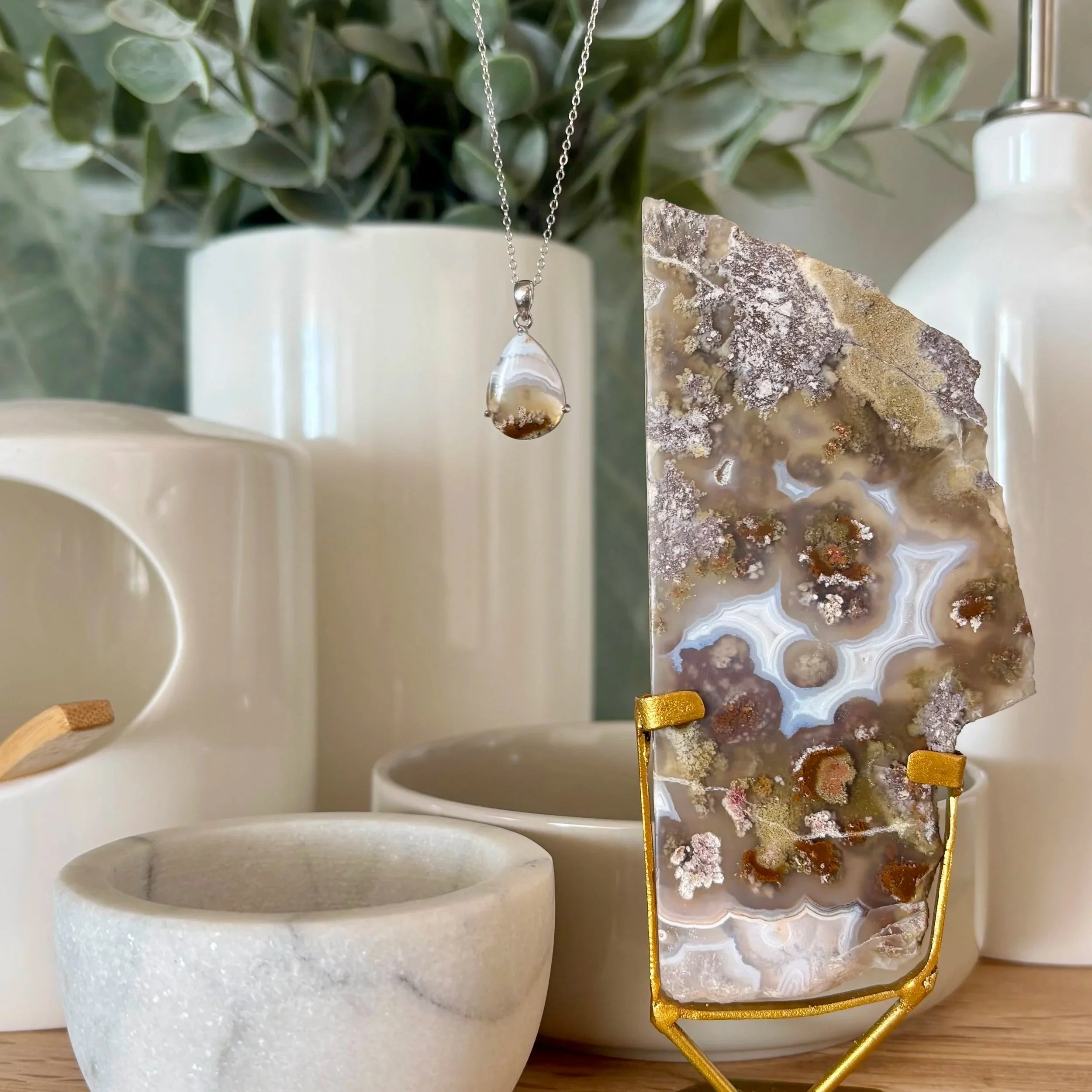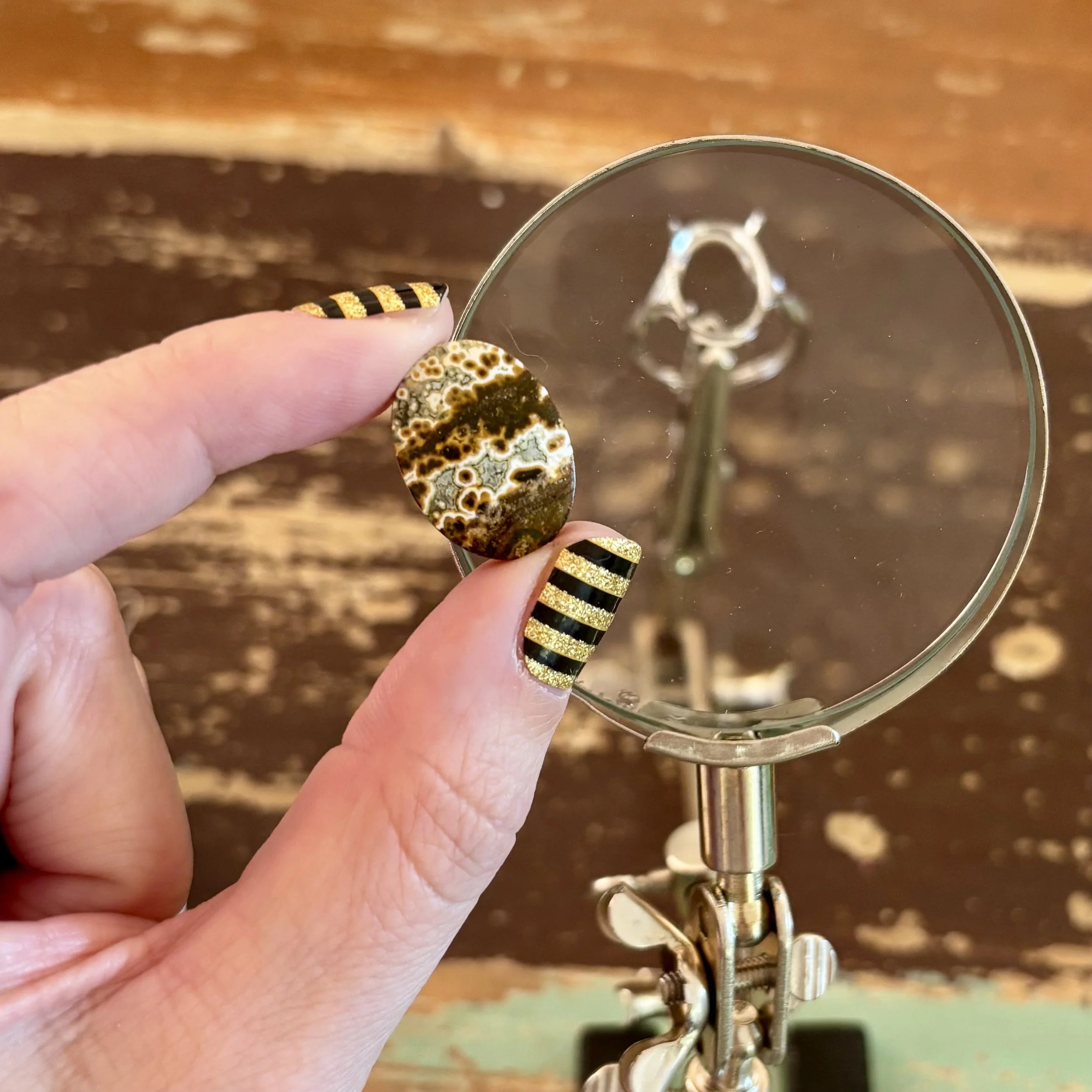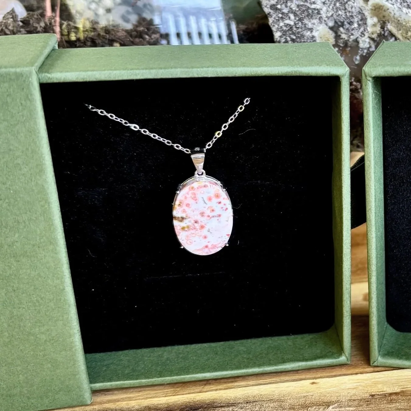 The stone in every piece is chosen slowly and intentionally. I turn every cabochon in my hands, study features and composition, feel into the energy, and select each one individually.